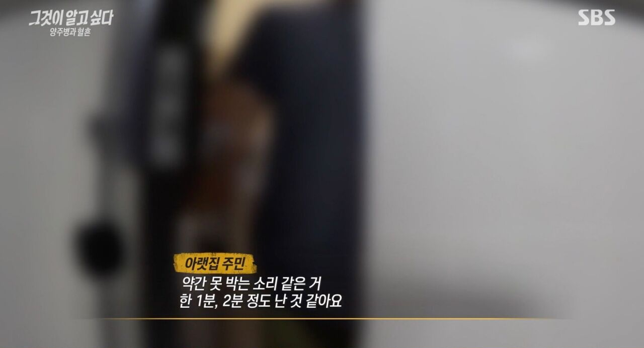이웃은 사건 당시 "못을 박는 느낌의 바닥을 내려치는 소리"가 들렸다고 명확히 증언했습니다.