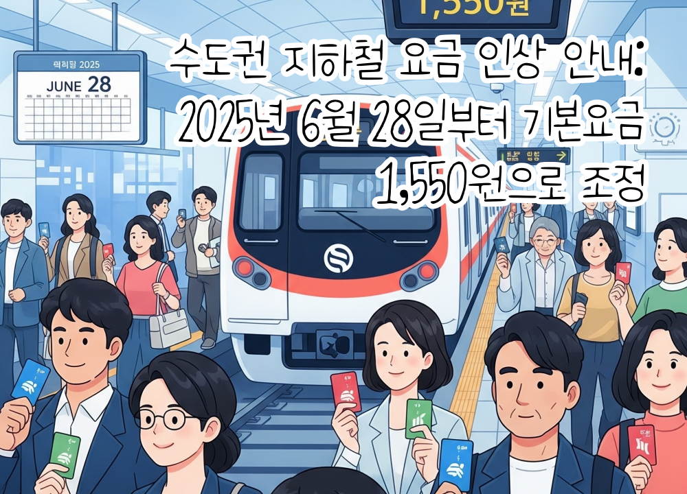 수도권 지하철 요금 인상 안내: 2025년 6월 28일부터 기본요금 1,550원으로 조정